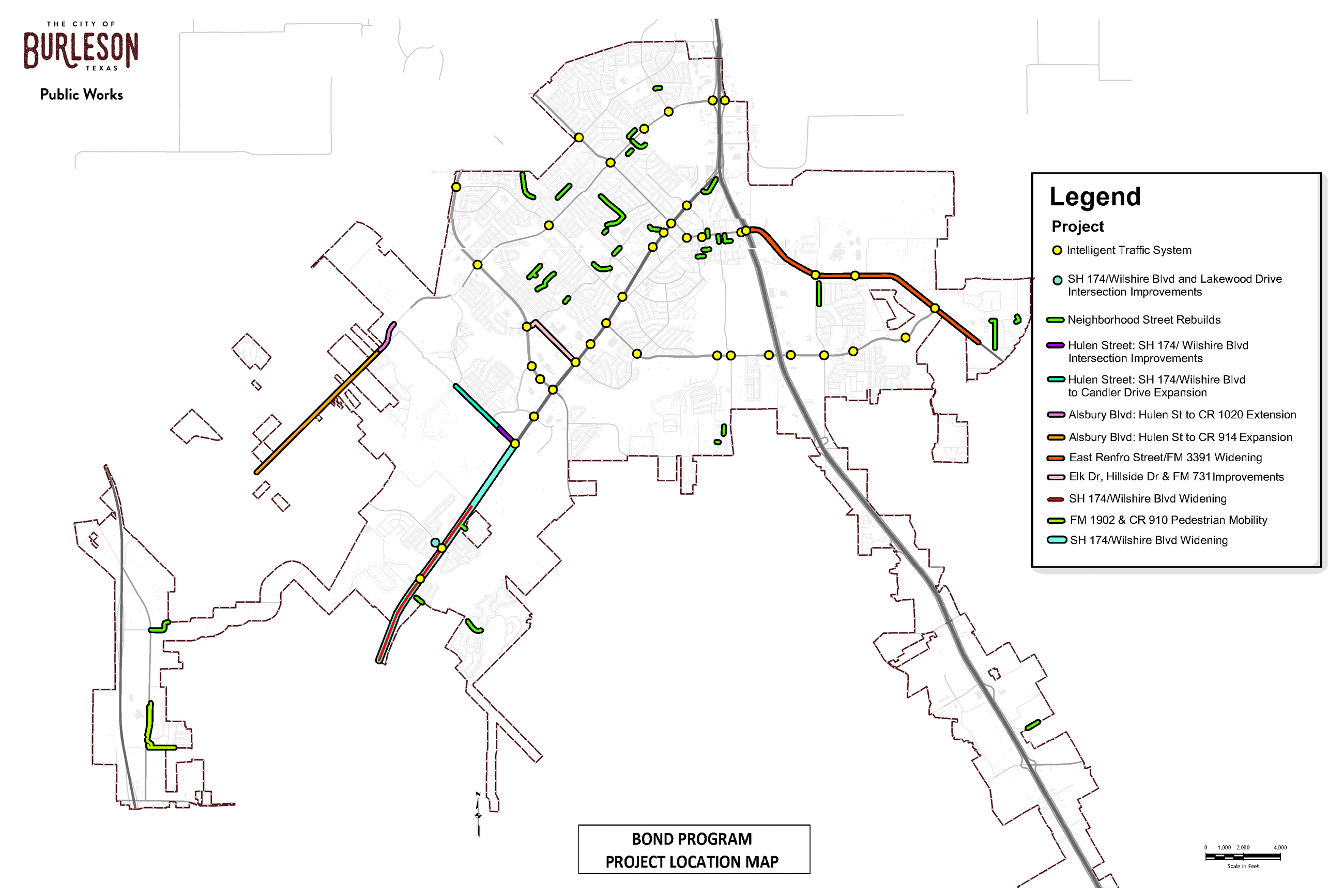 Burleson voters approved Proposition A for $33,645,000 on the May 7, 2022 special bond election ballot. The proposition passed with 937 votes for and 844 against. View the 2022 Bond public infrastructure projects location map.