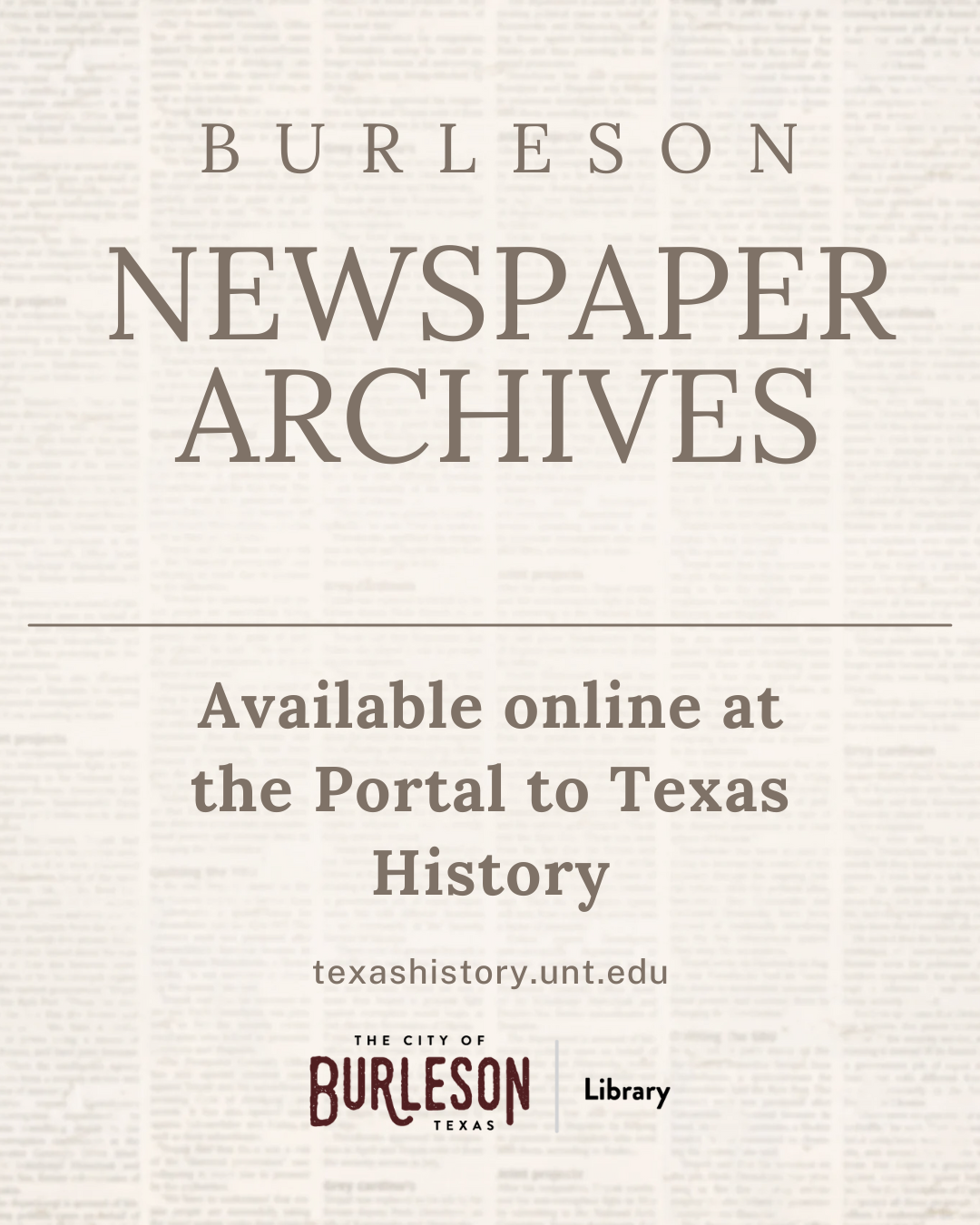 In 2016, thanks to a generous grant from the Ladd and Katherine Hancher Library Foundation, the Library and the University of North Texas were able to preserve and make accessible 43,231 pages of newspapers from the Burleson area, Johnson County and southern Tarrant County.  Those newspapers include dates from 1980 to 1999 and they are fully digitized and keyword searchable.