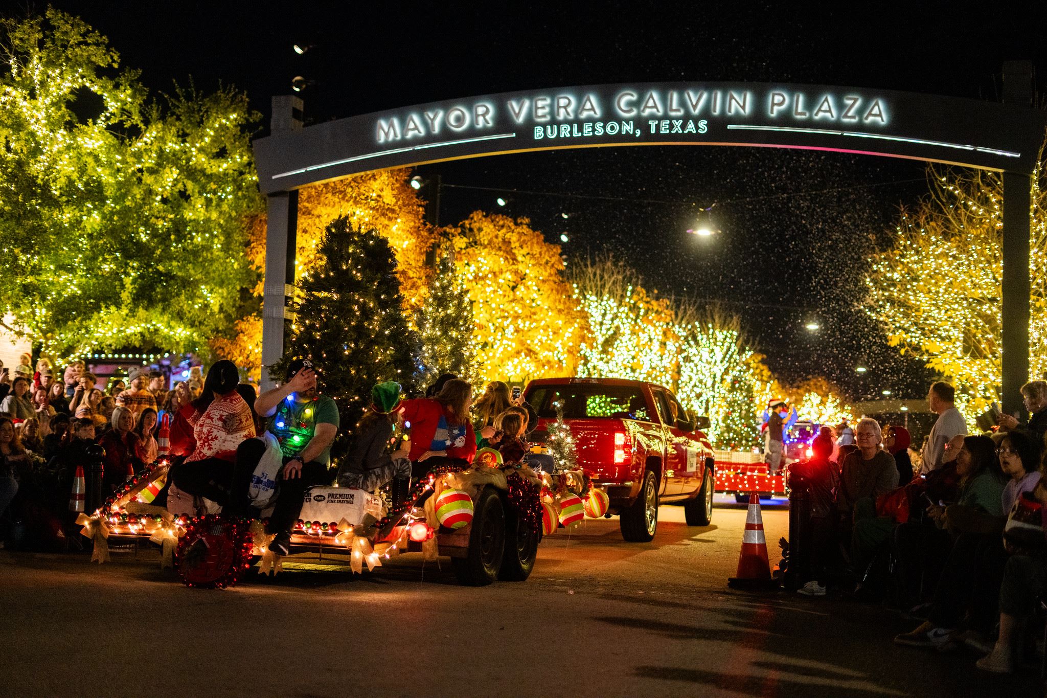 The Burleson Rotary Club hosts the annual lighted Christmas parade, starting at 6 p.m., followed by the tree lighting and drone show. Singers and dancers entertain the crowd and the Mayor Vera Calvin Plaza will dazzle with Christmas splendor when the 34-foot-tall Christmas tree, covered with more than 20,000 lights, is turned on by Santa and his helpers. The tree features an interactive Santa’s cabin at the base, creating a perfect backdrop for festive photos. Make sure to stay and watch the spectacular drone show, featuring magical Christmas displays set to holiday music. The drone show will last nine to ten minutes and will be visible from the area indicated on the included map.