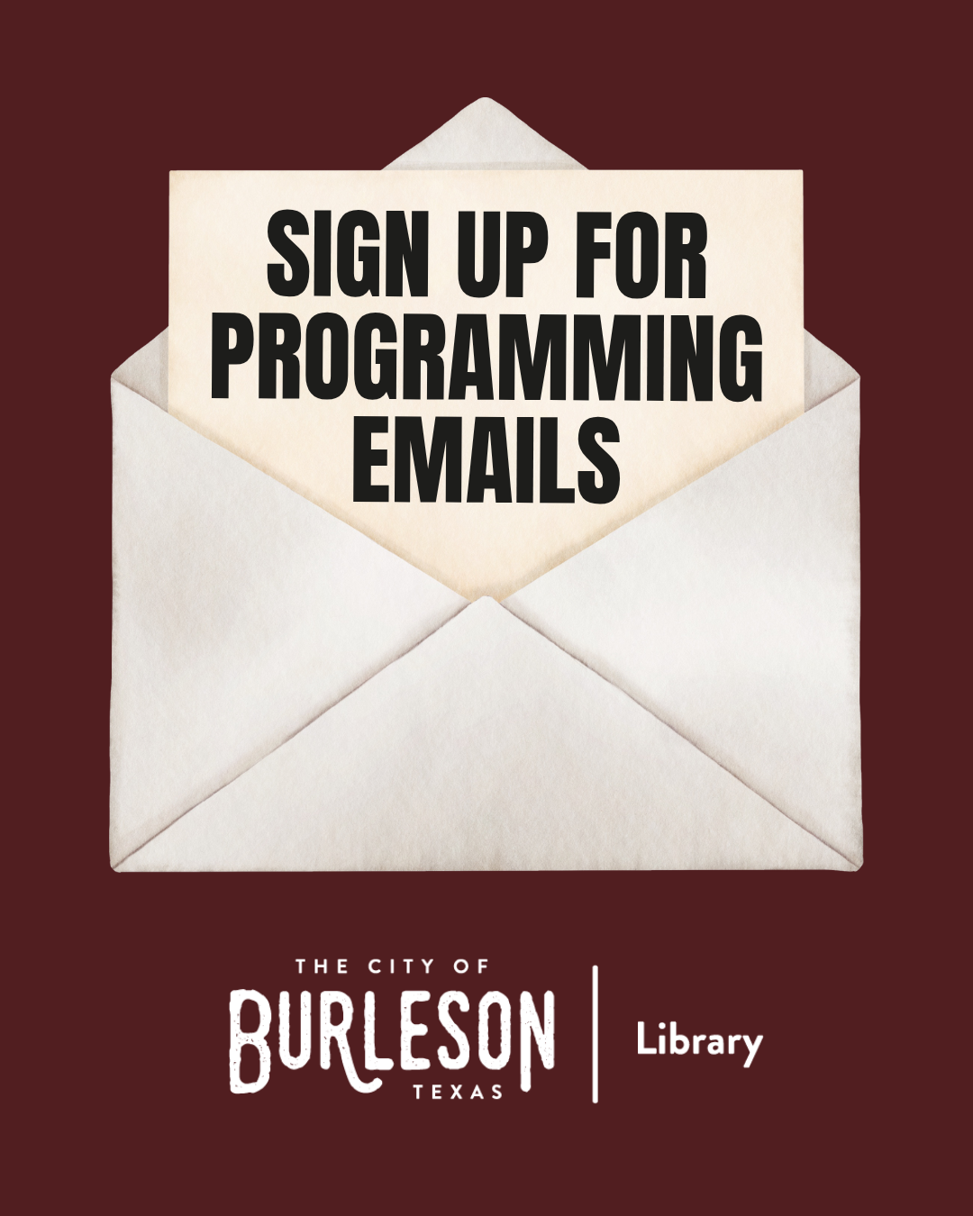 Sign up for our programming emails and get all the exciting event details delivered straight to your inbox—no scrolling, guessing, or mind-reading required.